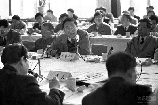 1992年3月11日發(fā),山東青島市市長俞正聲在經(jīng)濟(jì)體制改革研討會上發(fā)言。新華社/李錦