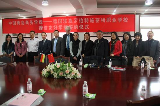 ????為開發建設國際合作與交流項目,拓寬辦學渠道,增強辦學實力,積極為我市藍色經濟跨越式發展做出應有的貢獻,日前,青島商務學校圍繞“培育青島職教‘德國特色’”發展主題,與德國北茵-威斯特法倫州魯爾區埃森市羅伯特施密特職業學校建立友好關系并舉行簽約儀式。市教育局職成處有關領導出席了簽約儀式。