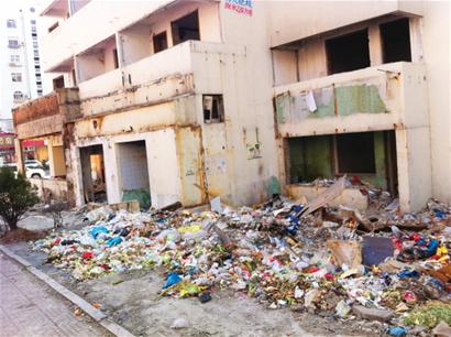 昨天下午,記者來到這處位于敦化路的衛(wèi)生死角,在一棟廢棄的居民樓上,寫著大大的“拆”字,樓體周圍是四處可見的