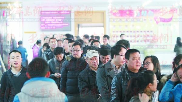 青島市房地產交易中心,辦理過戶業務的市民排起了長隊。