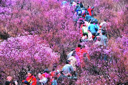 ????黃島區鐵山街道九上溝風景區的萬畝櫻桃樹和杏樹爭相綻放花蕾,景色迷人。記者昨天在景區看到,漫山遍野的櫻桃花和杏花一片粉紅色,遠看就像彩云飄在半山腰。附近村莊的楊老漢告訴記者,櫻桃花和杏花過后,山里的桃花也將開放,整個山谷約有半個月的時間沐浴在花的海洋里。(記者 趙玉勛 攝)