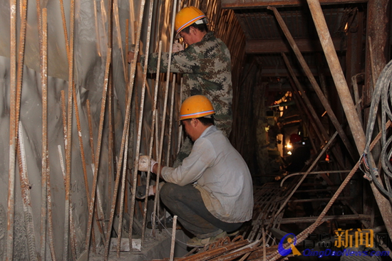 在地鐵區(qū)間隧洞開挖支護工序完成后,即轉(zhuǎn)入二次襯砌工序。二次襯砌施工前,首先進行基巖巖面處理。需要在超挖處回填平順,鑿除局部欠挖的地方,確保基面平順無棱角,無突出鋼筋等。然后利用預留的注漿孔進行初期支護注漿,確保基面沒有明水流。下面才算正式進行二次襯砌的基本工序--防水板的鋪設。首先掛土工布及防水板,一定按照設計打設PVC防水板墊片,確保防水板平順無褶皺,在使用爬焊機焊接防水板時一定要飽焊,不漏焊;其次進行鋼筋綁扎,確保鋼筋的層間距、水平間距和鋼筋保護層是質(zhì)量控制的重點。待這些完成后,即可將二次襯砌臺車推移到位,根據(jù)技術人員測得施工控制點,將全自動液壓臺車準確定位;最后一步即進行商品砼的澆灌。在澆筑前做好施工縫的鑿毛,控制原材料質(zhì)量,在澆筑時控制澆筑速度,澆筑時間,不能漏振,確保混凝土混凝土外觀質(zhì)量。