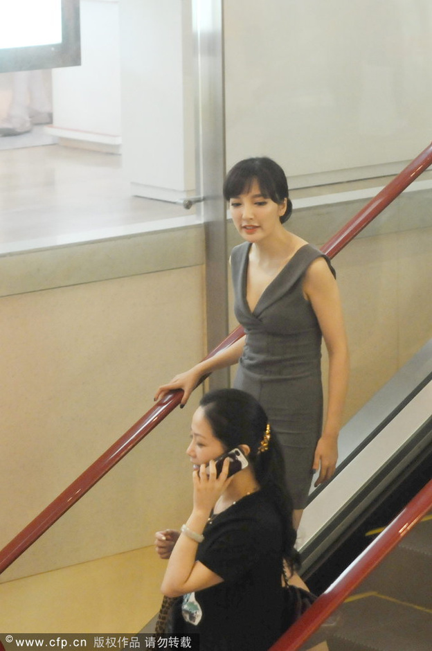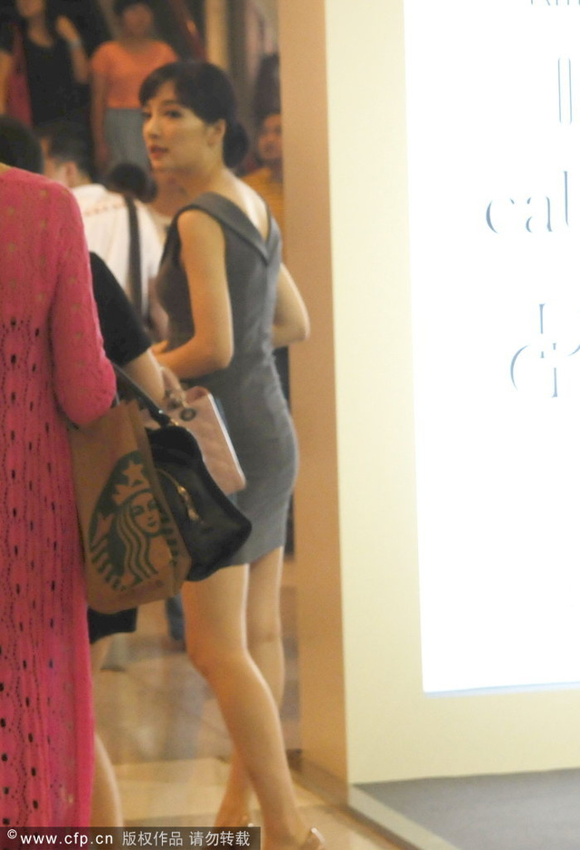 2013年09月14日,上海,王勵(lì)勤女友劉彥池在來福士廣場逛街,著深V領(lǐng)衣服乘坐自動(dòng)扶梯險(xiǎn)走光。