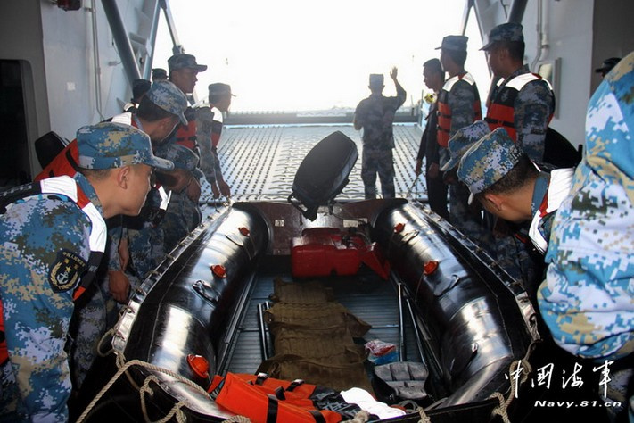3月11日上午9時40分,井岡山艦發現一件疑似紅色救生衣,立即出動橡皮艇打撈,不放過一絲希望,后經證實與失聯飛機無關。