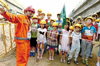 ????活動主辦方將暑期親子活動的首站定在了參觀青島地鐵 2號線海安路施工現場。大多數孩子是第一次近距離地接觸地鐵施工現場,孩子們感慨道:“原來,爸爸是在這樣的環境下工作的啊!”