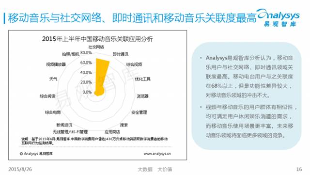 ??? 而很顯然的是,音樂市場競爭遠未結束,未來,移動音樂還將拓展到更多領域,包括車載硬件、智能家居、虛擬現實等等,而能否持續且長遠的為用戶提供高品質、多元化和專業化的音樂體驗,則決定著下一個年頭,誰能當選用戶首選的位置。