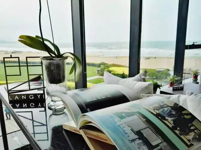 美術和書籍的結合,店里有一整面墻的落地窗,視野很棒,一眼望出去能看到沙灘。