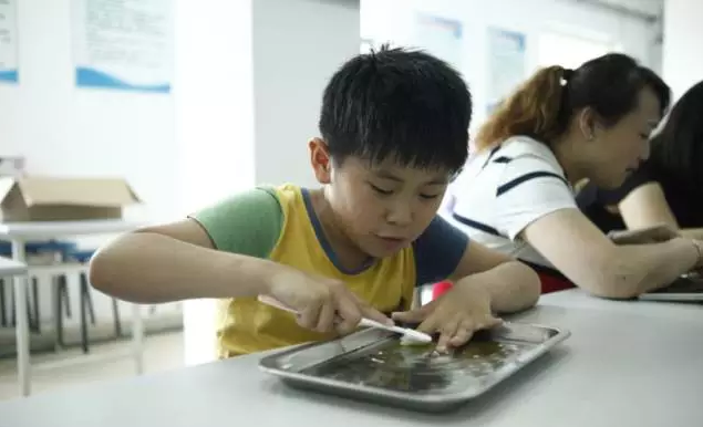世界上沒有兩片相同的葉子,在小朋友們一次次清洗,輕刷下,一張張其貌不揚的桂葉都逐漸變得晶瑩剔透起來,在曬干染色后,塑封后,便會成為一枚獨特的書簽,相信這樣一枚葉脈書簽將成為孩子們童年里一份難忘的紀念。