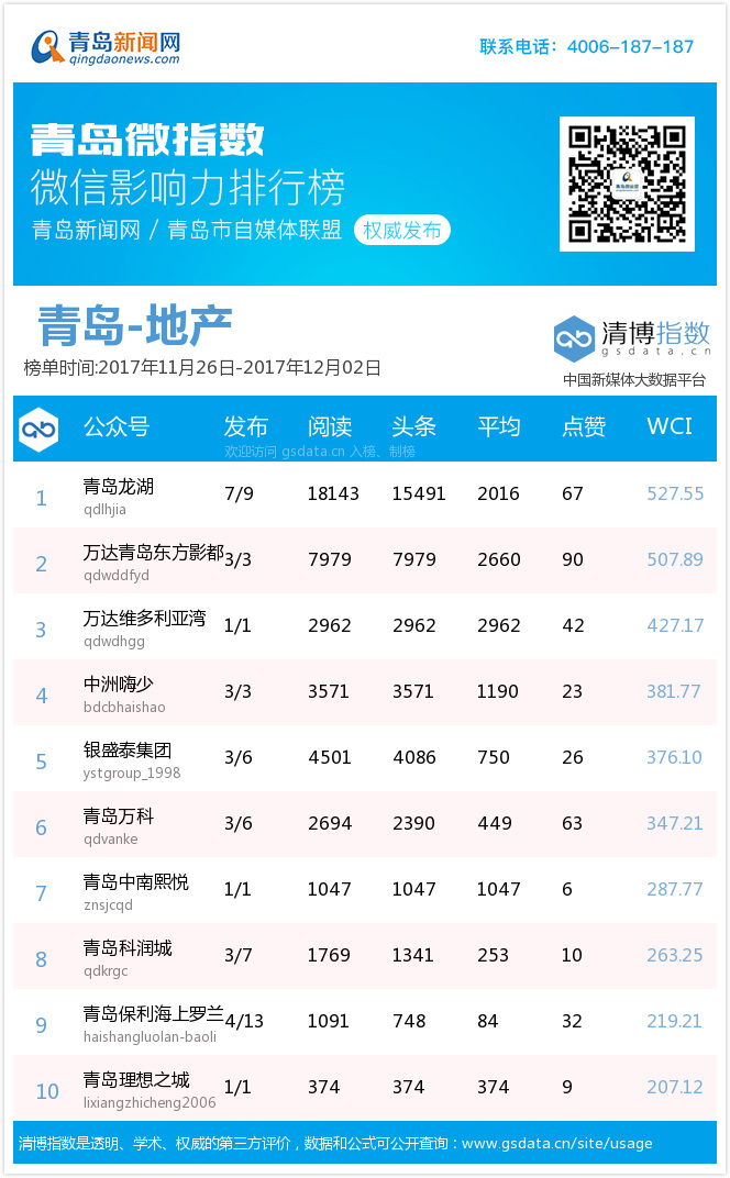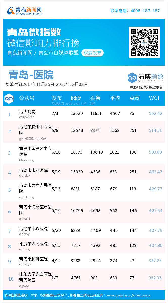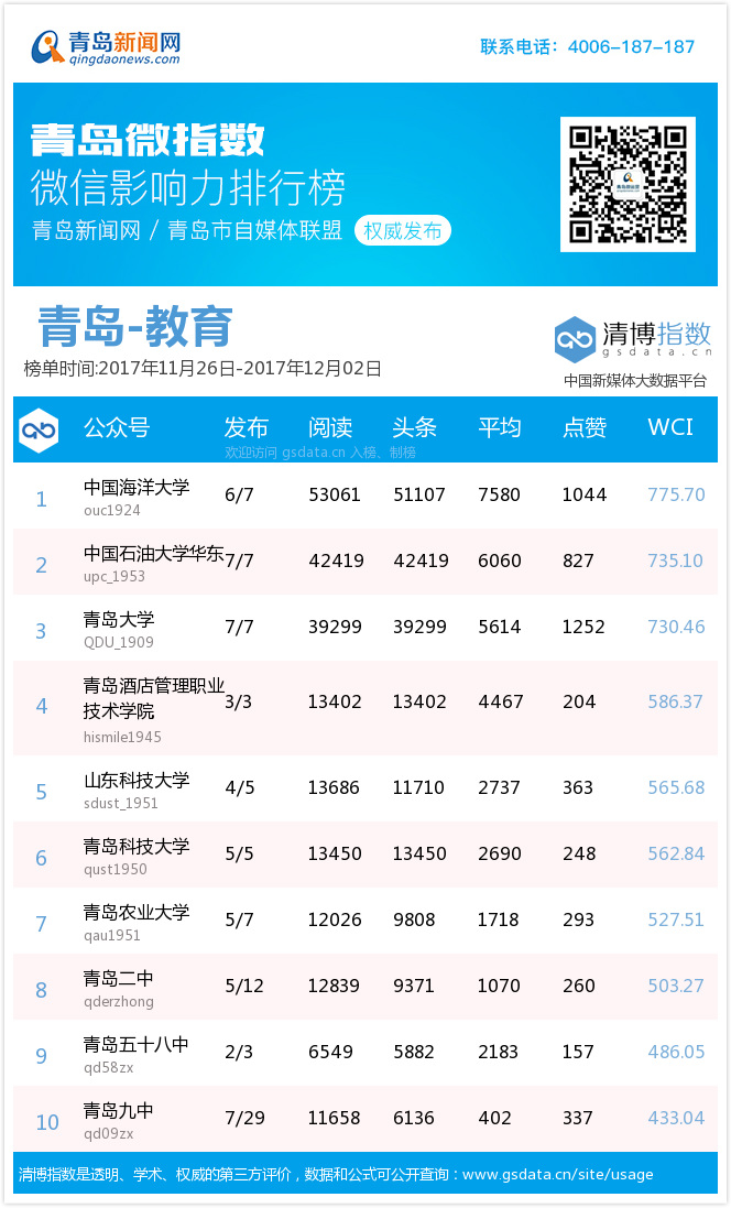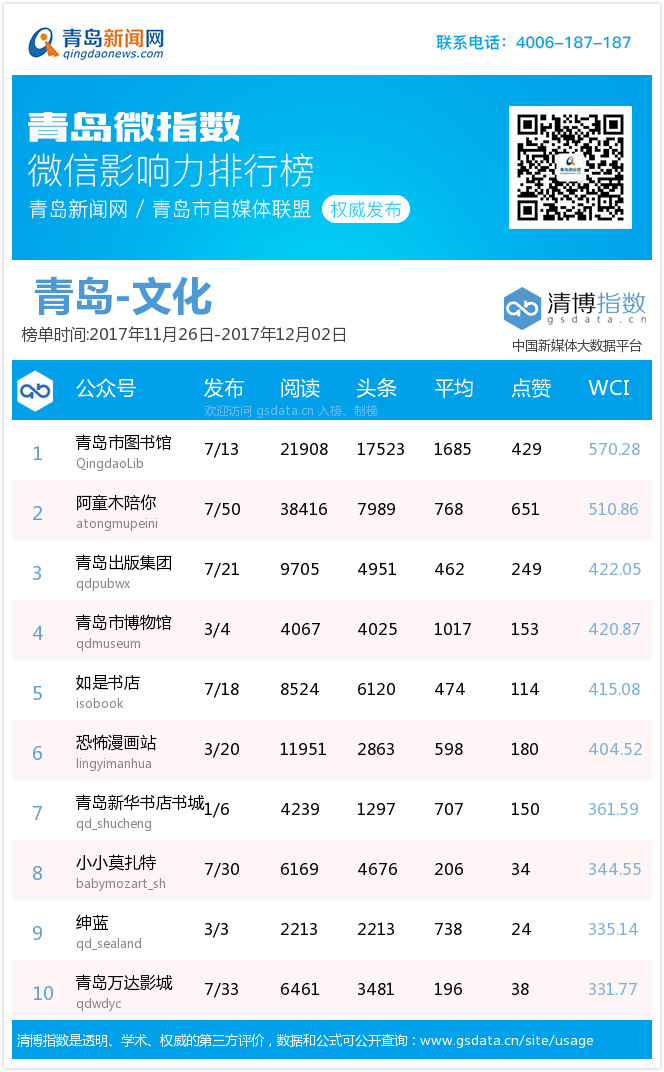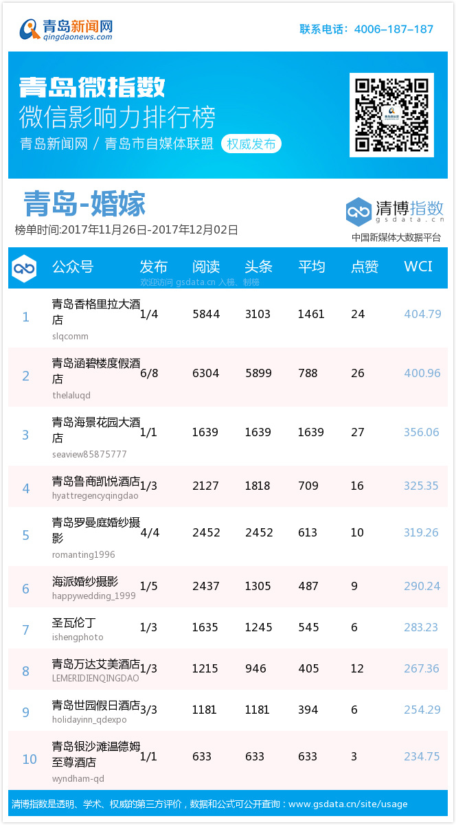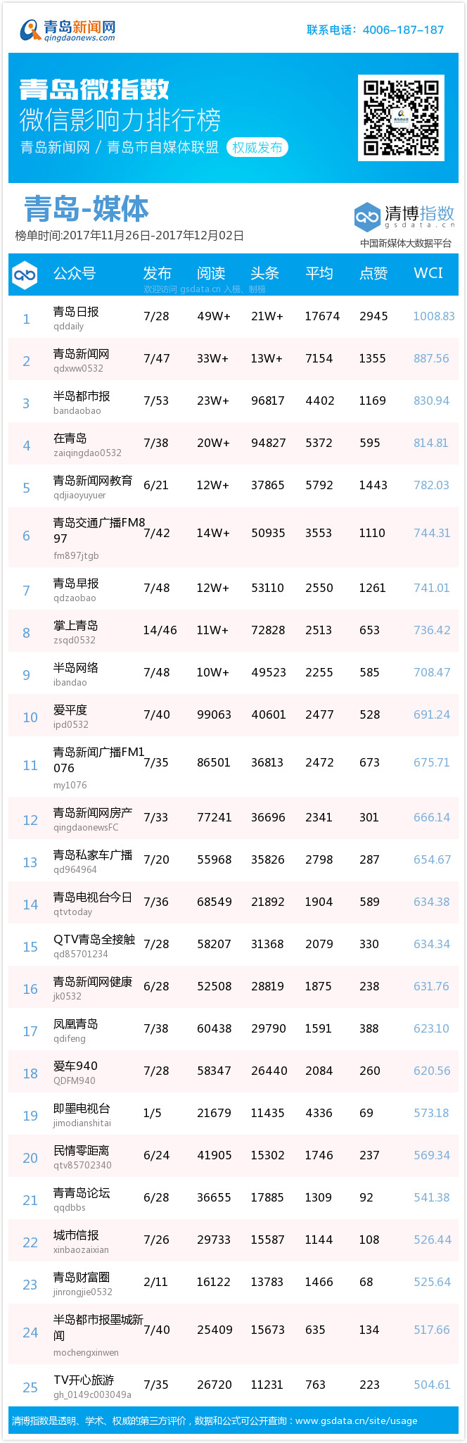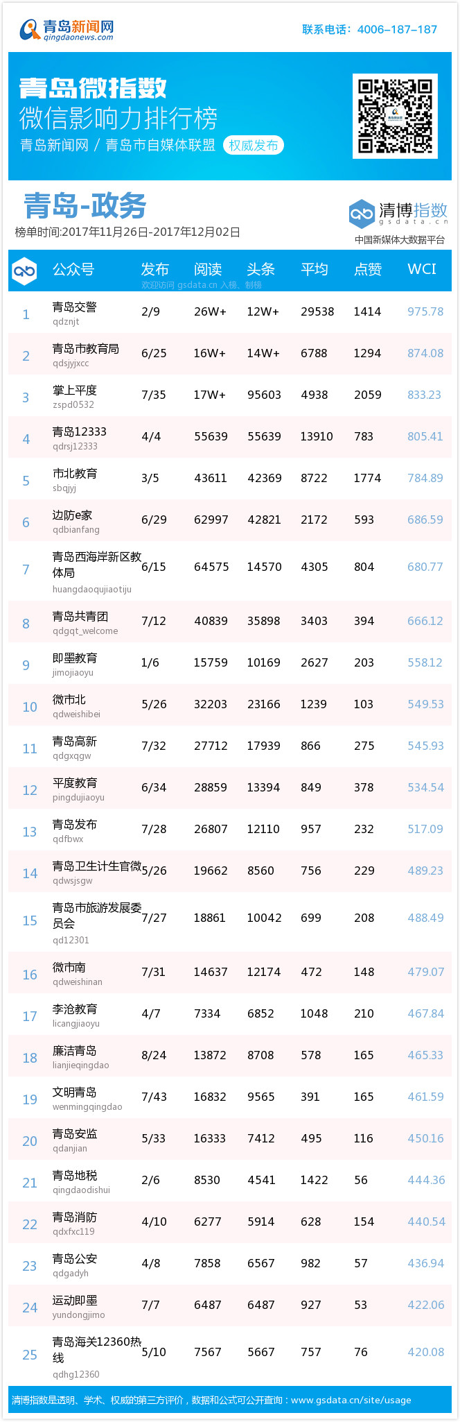 1、“青島微指數微信影響力排行榜”由青島新聞網微運營整理發布。數據來自清博指數。更多信息請關注。