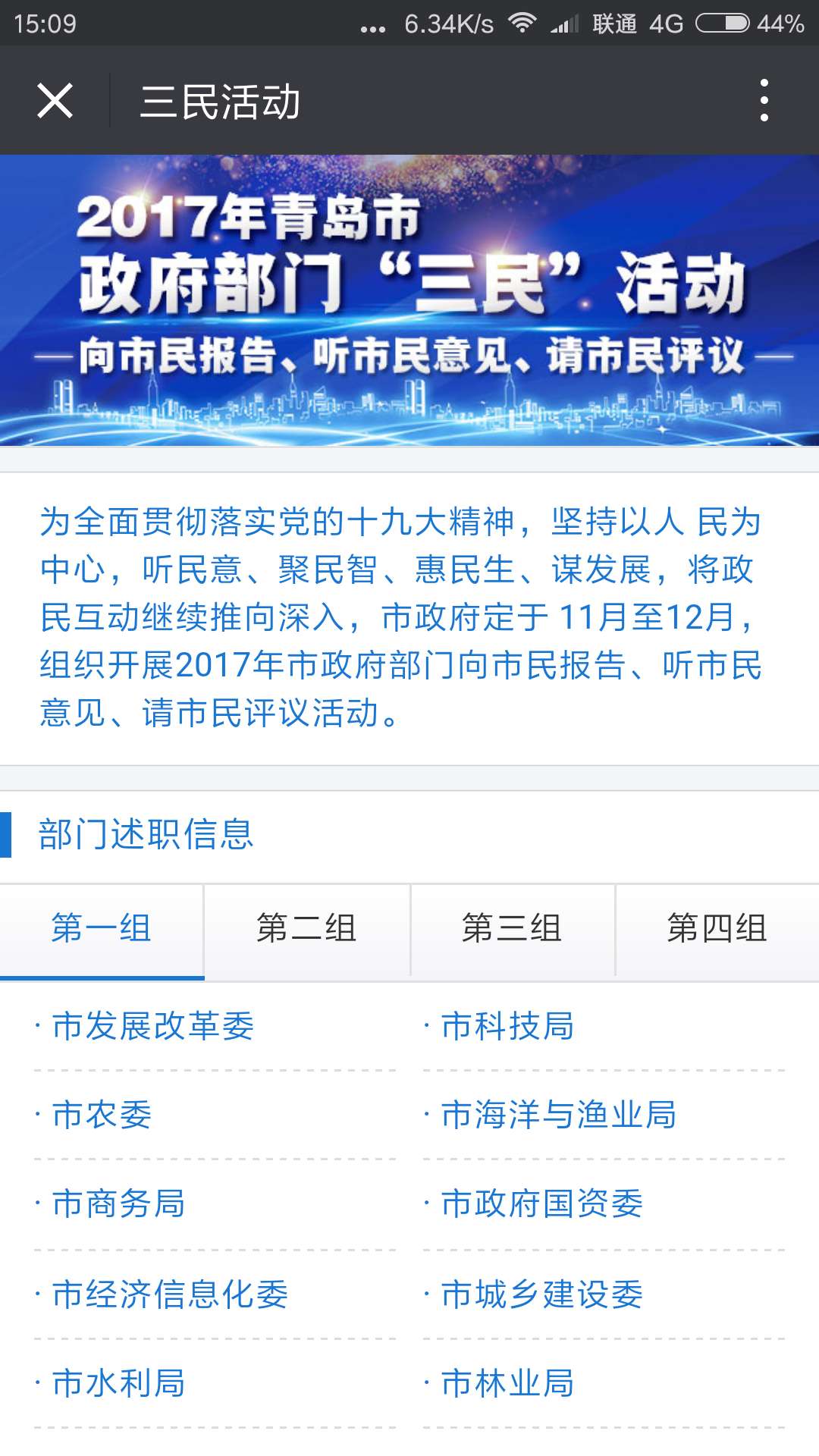 為了能讓廣大群眾及時(shí)了解“三民”活動(dòng)相關(guān)信息,收看述職會(huì)現(xiàn)場(chǎng)直播,智慧青島特推出“三民”活動(dòng)專題頁(yè)面,您可以掃描下圖二維碼,打開智慧青島三民活動(dòng)專題頁(yè)面,實(shí)時(shí)查看市政府各部門工作報(bào)告與三民活動(dòng)相關(guān)報(bào)道,述職會(huì)當(dāng)天也可通過(guò)專題頁(yè)面收看現(xiàn)場(chǎng)直播。