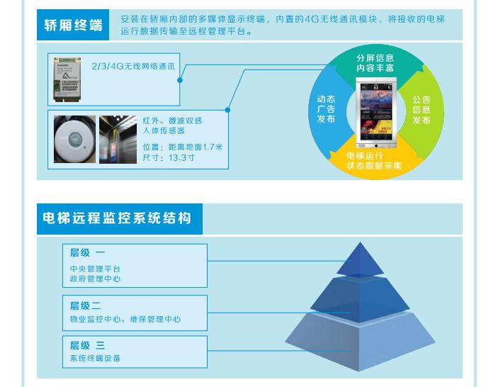 一、為物業(yè)公司搭建電梯信息管理平臺,包括電梯基礎(chǔ)資料管理、故障記錄、維保記錄、狀態(tài)實(shí)時監(jiān)控、年檢管理,輔助物業(yè)開展規(guī)范化、信息化、常態(tài)化的電梯管理模式。協(xié)助物業(yè)發(fā)布一些生活服務(wù)、物業(yè)通知,將樓層顯示、天氣、時間日期、時政要聞、電梯年檢等公益信息呈現(xiàn),它是“電梯維護(hù)保養(yǎng)的監(jiān)督者”:系統(tǒng)預(yù)設(shè)維保規(guī)則和工作計劃,定期提醒督促維保時限,維保工作人員刷卡簽到,物業(yè)人員刷卡驗收,系統(tǒng)自動生成維保記錄等,輔助維保物業(yè)公司健全電梯維護(hù)保養(yǎng)資料檔案,形成電梯維保安全管理的良性機(jī)制,從而大大降低安全隱患。,它也是“常駐電梯的黑匣子”:引入物聯(lián)網(wǎng)技術(shù),通過一個個分布式的電梯衛(wèi)士終端(相當(dāng)于常駐電梯的機(jī)器人)來進(jìn)行集群化、智能化管理是質(zhì)監(jiān)部門的工作需要和發(fā)展趨勢。電梯衛(wèi)士輔助監(jiān)管部門和使用,維護(hù)單位實(shí)現(xiàn)電梯狀態(tài)實(shí)時監(jiān)控、事故調(diào)查、建立有效的救援機(jī)制,強(qiáng)化對維保和年檢的日常管理等。