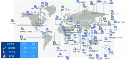 海外,海爾19個呼叫中心,23個站點,有5600家網(wǎng)點、12000多名工程師,覆蓋全球6大洲40個國家,支持27種語言32個產品大類。通過建立自有服務中心,可以為全球用戶提供7*24小時全天候服務。