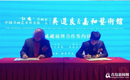 2018年1月6日,被譽為中國書畫外交第一人的“紅墻”書畫家吳進良先生與嘉和藝術館簽約儀式暨新聞發布會在青島市南區福州北路5號青島嘉和藝術館隆重舉行。前外交部禮賓司司長、中國前外交官聯誼會副會長魯培新;中國《收藏》雜志原主編、西安市收藏家協會名譽會長李毅民出席了本次簽約儀式。