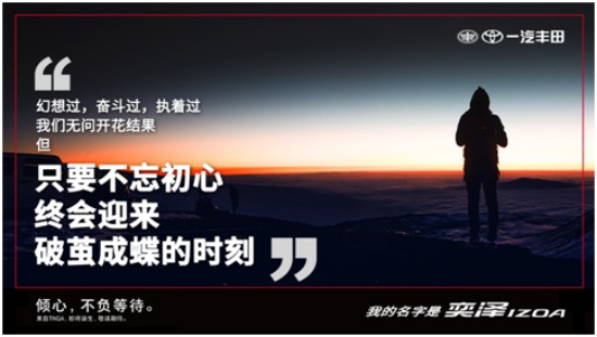 生活總會遇到許多無法言表的窘境。但我們堅信,美好的事情即將發生。就像奕澤IZOA所寓意的那樣,行隨心動,和奕澤IZOA一起砥礪前行,追求幸福和年輕向上的力量。因為,傾心,終將不負等待!