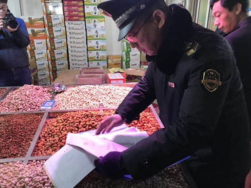 檢察人員在撫順路批發(fā)市場(chǎng)進(jìn)行抽檢