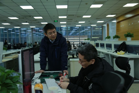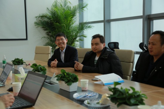 陳鋒與同事在對(duì)接相關(guān)工作事項(xiàng),征詢項(xiàng)目進(jìn)程。
