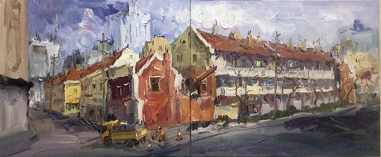 此次“畫(huà)城——王希元”的展覽作品選擇距“老街里”最近的濰縣路向外展開(kāi),一幀幀城市景觀的圖式符號(hào)隨著畫(huà)家情緒的注入,為觀眾呈現(xiàn)一個(gè)帶著濃郁老青島人文特質(zhì)的“家園”現(xiàn)貌,帶大家共同與這座城發(fā)起一場(chǎng)懷舊對(duì)話。