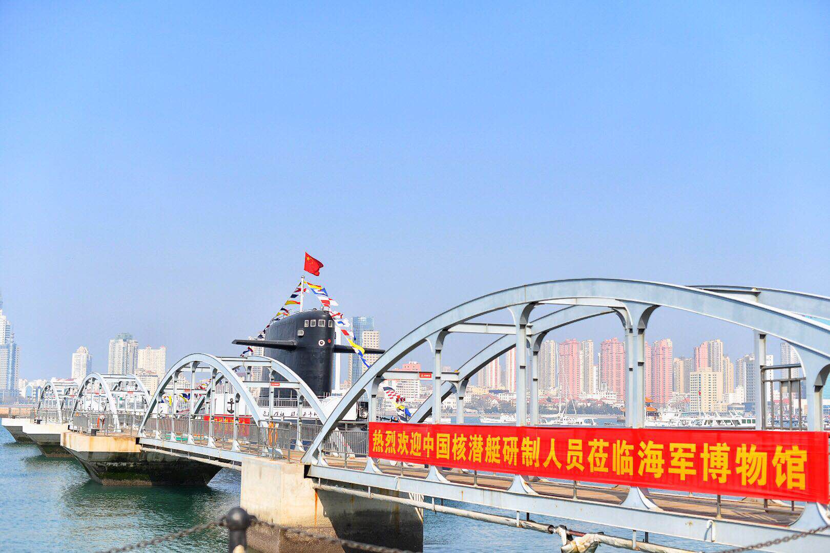 上午9時,在雄壯的國歌聲中,隆重的紀(jì)念儀式在海軍博物館潛艇碼頭正式開始。海軍博物館館長康海東對老兵的到來表示熱烈歡迎,他在致辭中表示:“我們不會忘記你們,歷史不會忘記你們,在我們面前的這艘核潛艇,就是你們對中華民族鞠躬盡瘁、勞苦功高的歷史見證!”