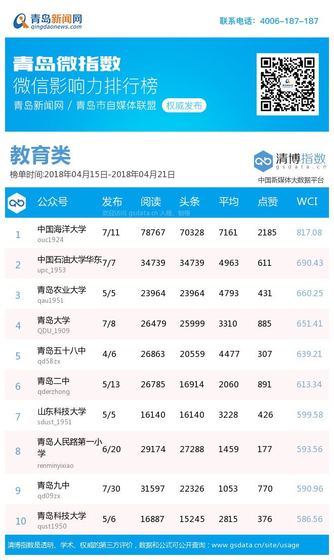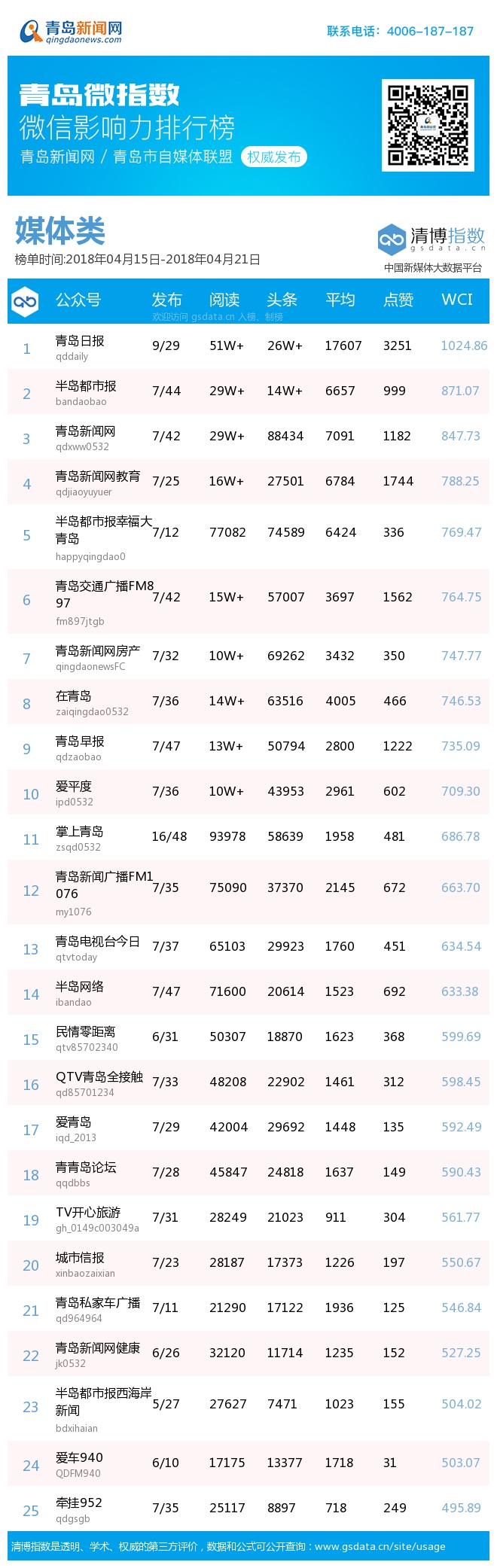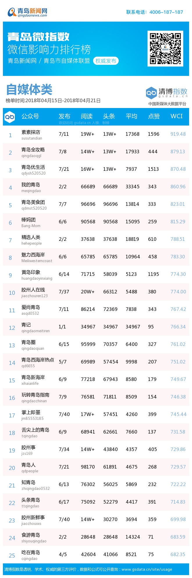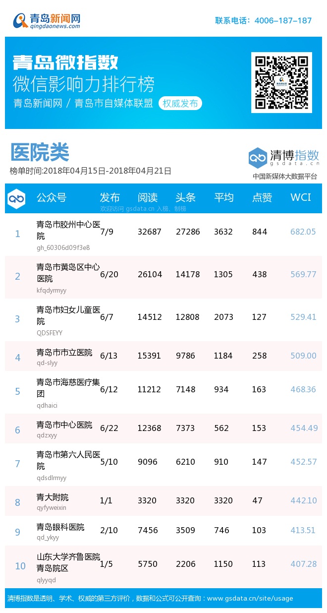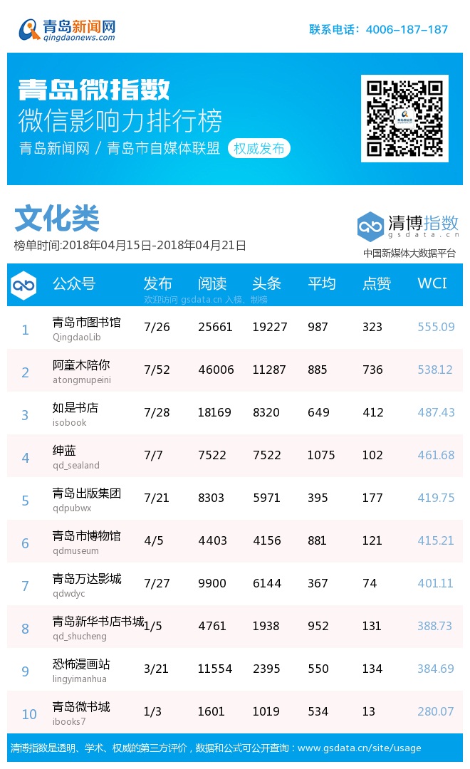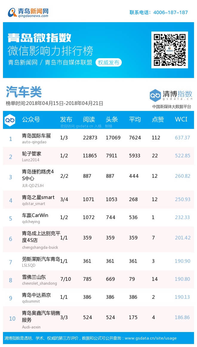 3、本次榜單收錄了青島14個行業微信公眾號,如您的賬號暫未收錄,可聯系4006-187-187。