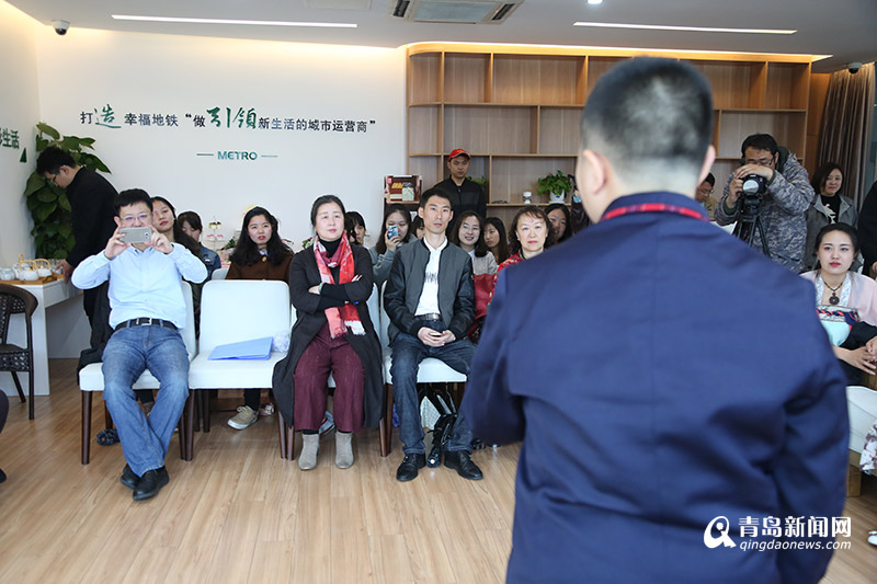 一曲清如濺玉、顫若龍吟、悠然低沉的古琴曲《陽關三疊》,帶大家頓回古風年代。李白的名篇《將進酒》,大氣磅礴、豪邁曠達。“地鐵代表著匆匆忙忙的都市快節奏,詩歌創作的靈感是瞬間迸發的,地鐵和詩歌是如此合拍。”2016年青島地鐵原創詩歌征集活動一等獎獲得者曾東進現場朗誦了他的獲獎作品《等待一列地鐵》。當談到地鐵與詩歌之間的親密關系時,他說,地鐵的人流讓它成為文學和詩歌傳播的絕佳場所,而作為一個詩歌愛好者,他將繼續用詩歌表達地鐵為人們生活帶來的幸福感。