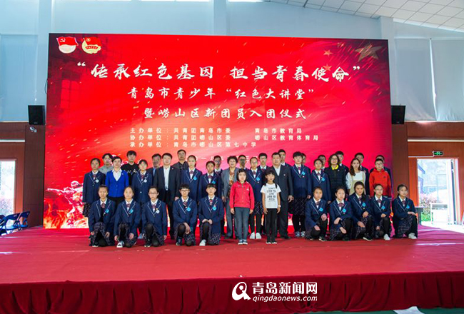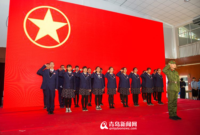 嶗山區新團員懷著無比的光榮感,新團員佩戴好團徽,在團旗下莊嚴宣誓,將活動推向高潮。