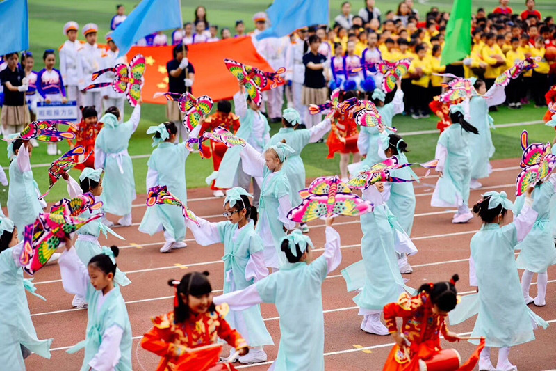 開幕式上,伴著《運動員進行曲》鏗鏘有力的節奏,在國旗護衛隊的引領下,校彩旗方隊、啦啦操方隊以及9個年級代表隊邁著整齊堅定、昂揚奮進的步伐,喊著嘹亮的口號依次走過主席臺。他們有的器宇軒昂、剛毅挺拔,每一個正步、每一次揮臂都彰顯了當代青少年的颯爽英姿和朝氣蓬勃;有的身著各具特色的民族地域服飾,載歌載舞,熱情洋溢,弘揚了中華傳統文化,體現了“和而不同,美美與共”的校園文化理念;有的利用各具特色的道具:腳踩“風火輪”、腰掛鑼鼓、手握風箏,滑出青春張揚的魅力,敲出動感活力的童年,舞出多彩斑斕的夢想;有的映著朝陽,踏著海浪,展示了蛙泳、仰泳、自由泳等水上運動項目,宛若藍色的小精靈,向眾人展示了豐富瑰麗的海洋文化;還有的身穿武術服,手持功夫扇,容光煥發、步伐矯健,演繹了氣貫山河的尚武精神,將中華武術的博大內涵進行了完美詮釋。