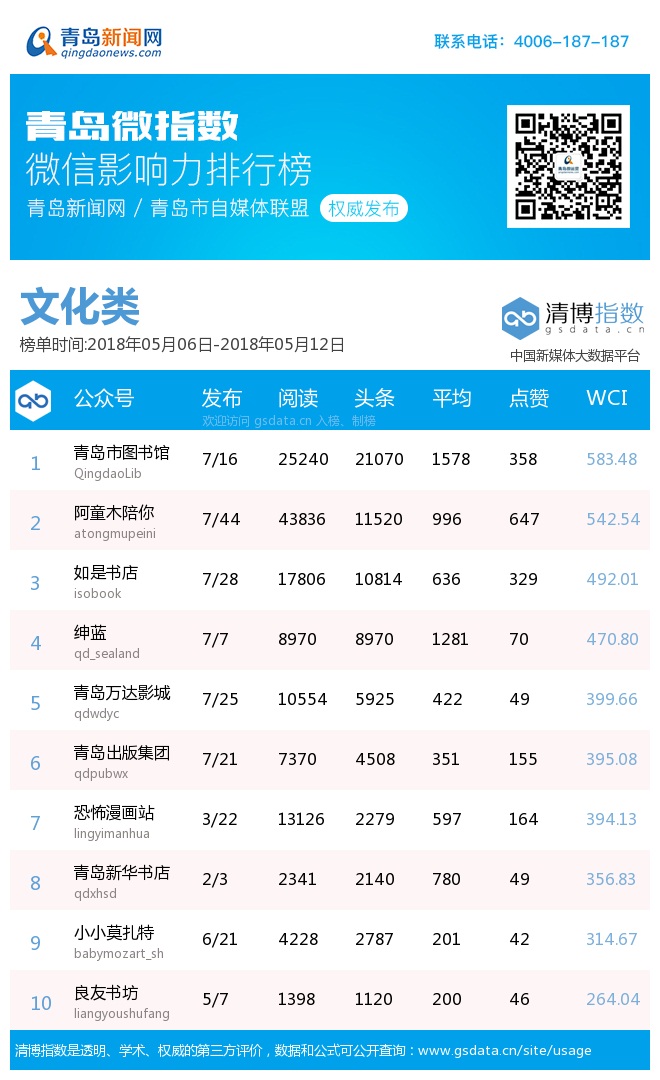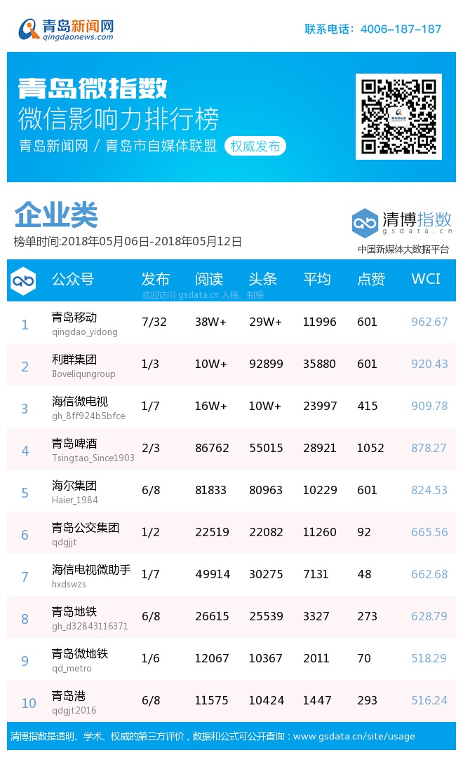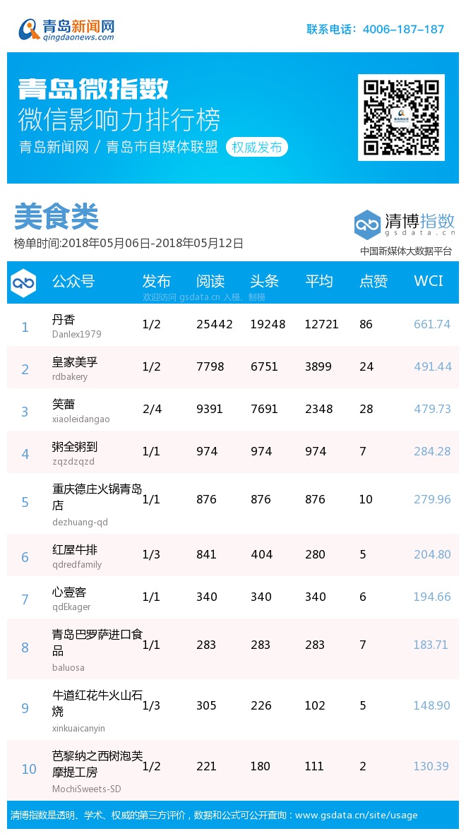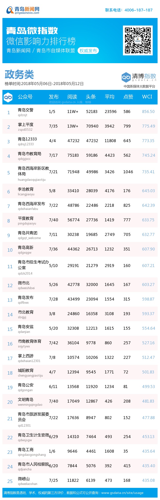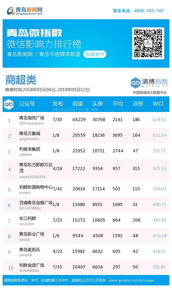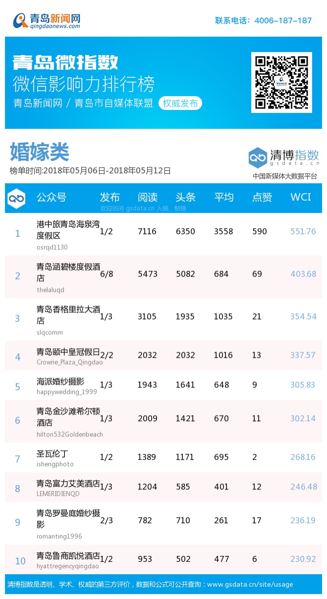 3、本次榜單收錄了青島14個行業微信公眾號,如您的賬號暫未收錄,可聯系4006-187-187。