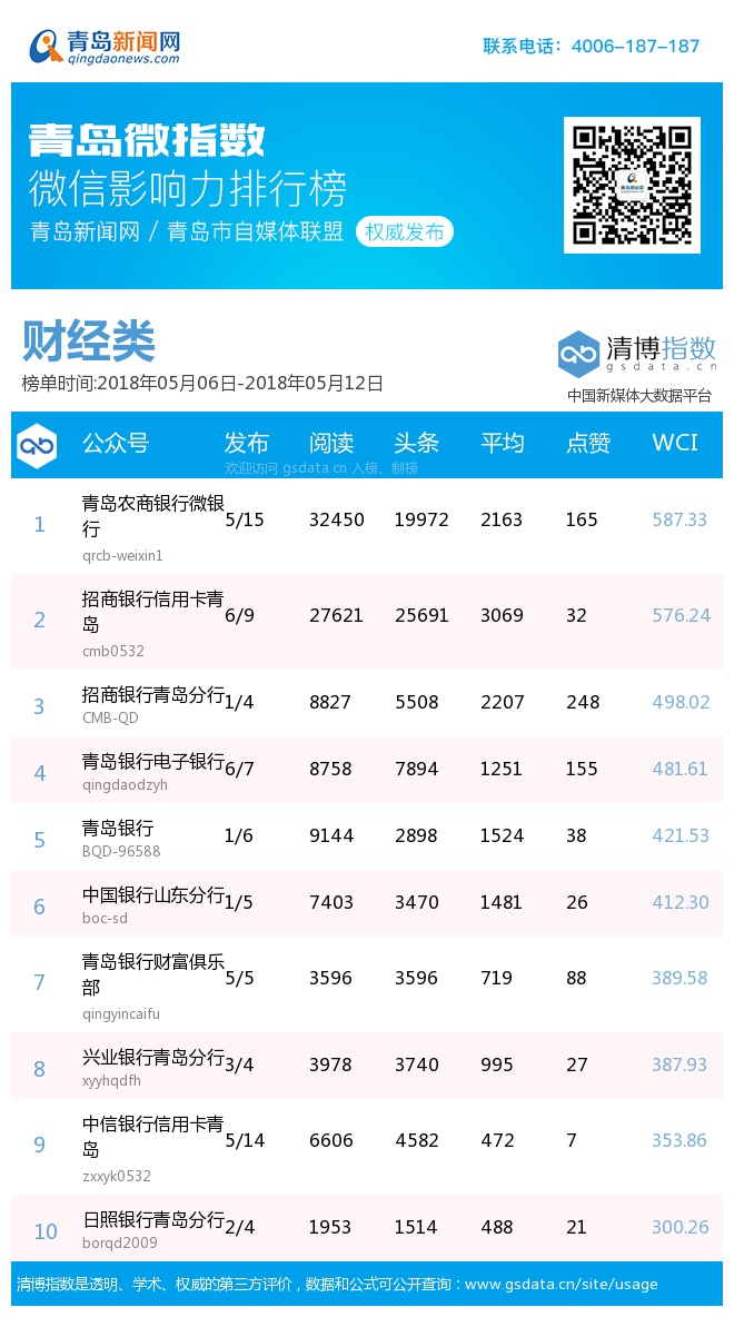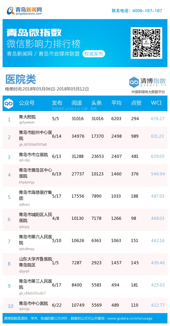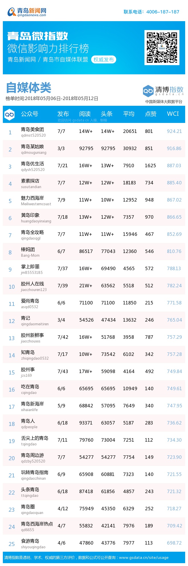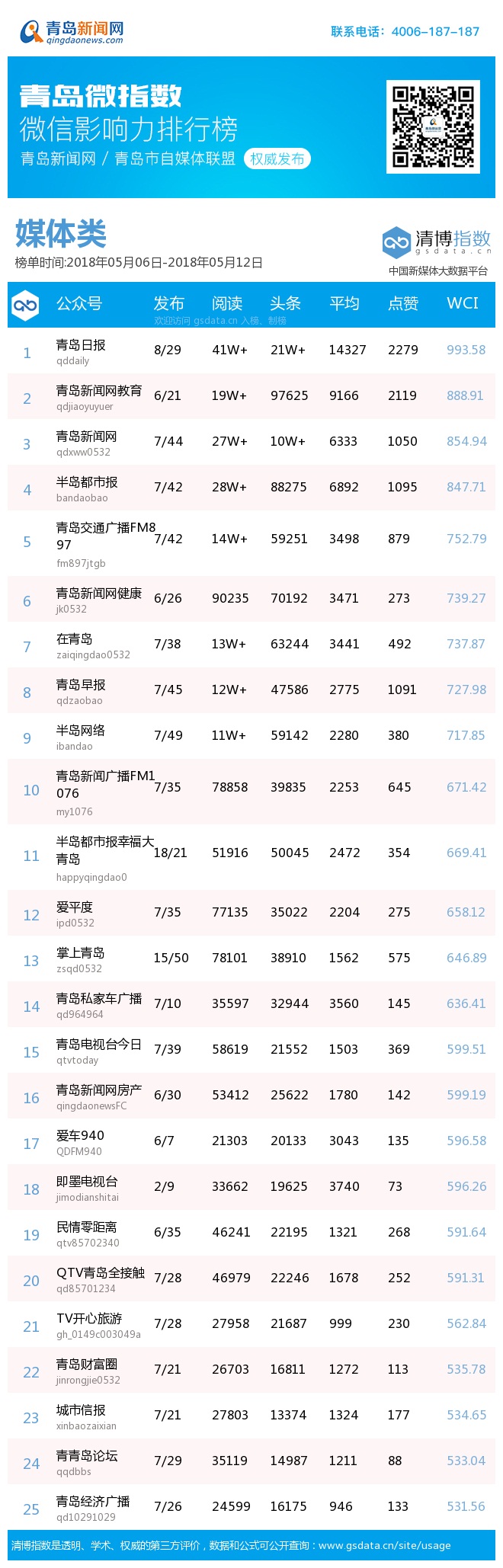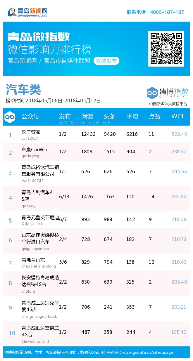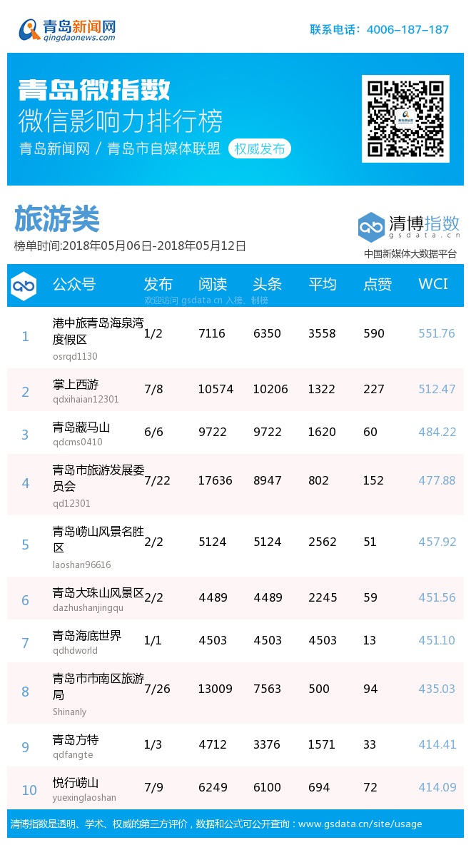 3、本次榜單收錄了青島14個行業微信公眾號,如您的賬號暫未收錄,可聯系4006-187-187。