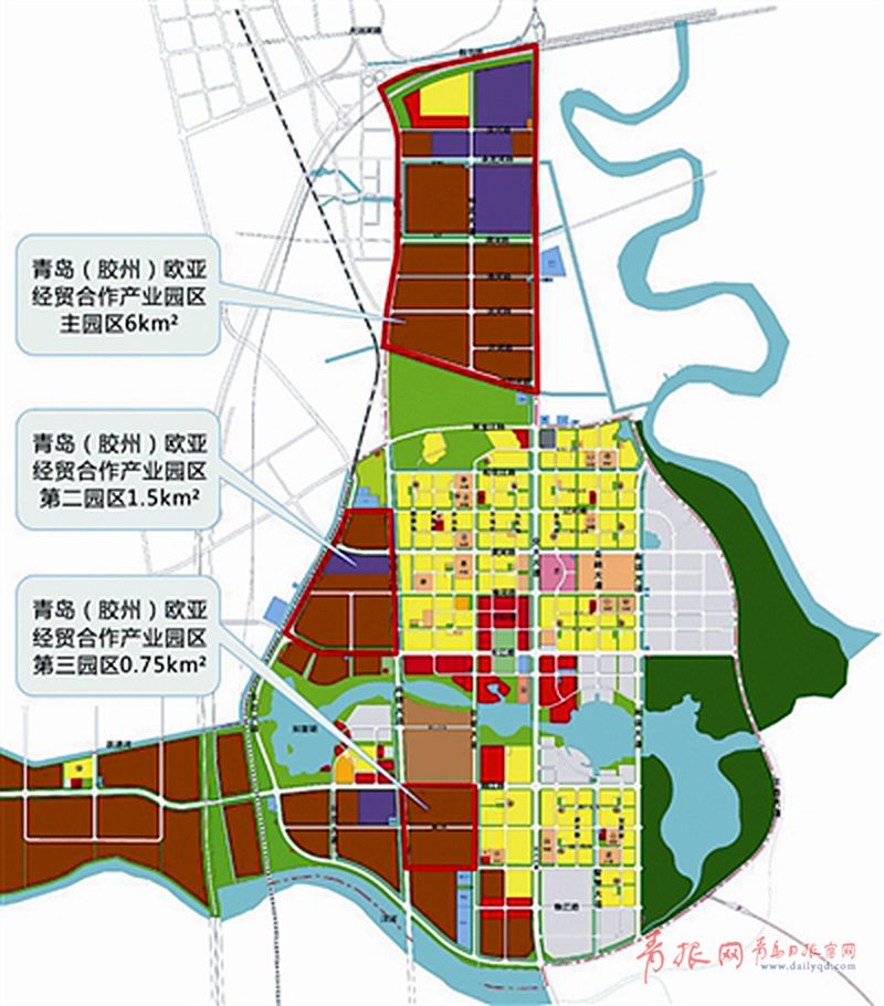 青島全力建設全國唯一歐亞經貿合作產業園,探索“一帶一路”經貿合作新模式。圖為歐亞經貿合作產業園區規劃圖。