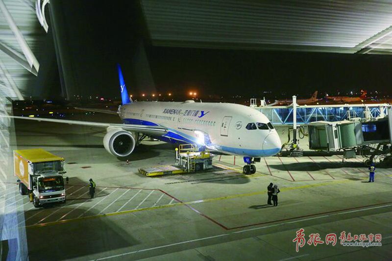 青島空中航線達到186條。圖為2017年12月11日,青島—洛杉磯直飛航線開通。(傅學軍 解豪 攝)