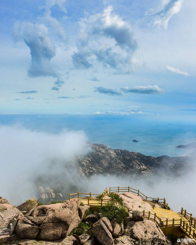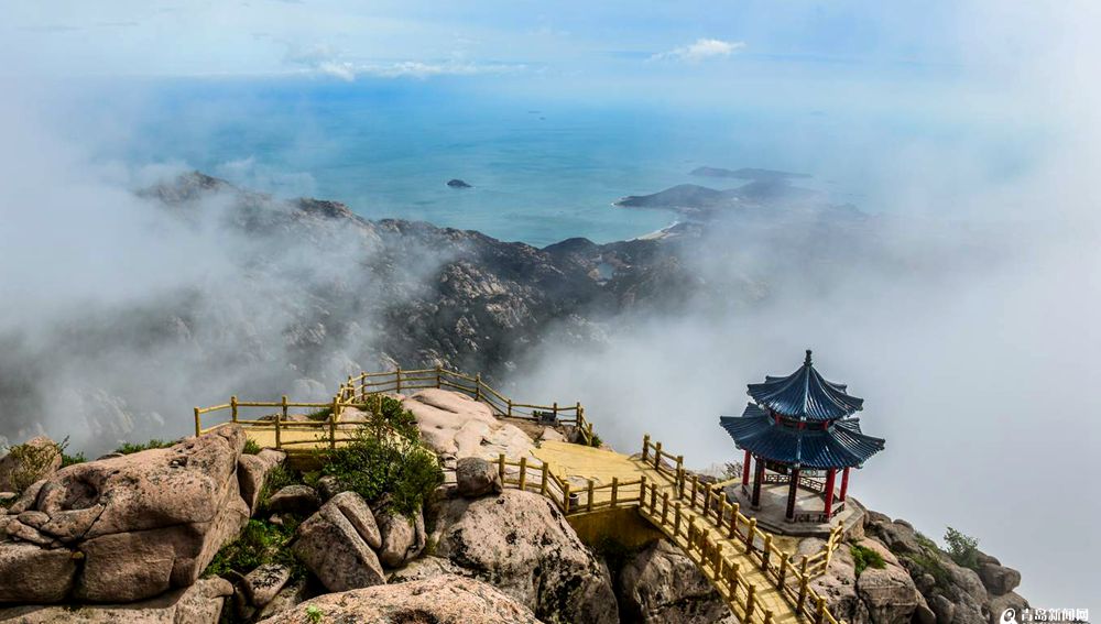 青島新聞網4月24日訊(文 龐為 圖 王華)4月的青島天氣多變,時而艷陽高照,時而陰雨綿綿,時而又大風呼嘯。最近幾天,嶗山巨峰景區頻現云海美景,登頂仙山之巔,云朵從山谷間飄過,遠處的海面藍得如洗過一般奪目。青島今天發布大風預警,午后13點北風達到5級,全天氣溫在9-18℃之間,預計本周之內“春寒料峭”的感覺都將較為明顯。