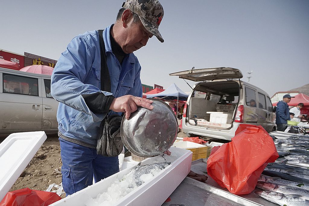 漁民和商戶自豪地介紹著沙子口春鲅的特征