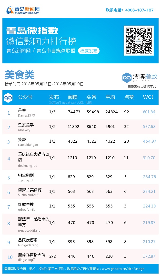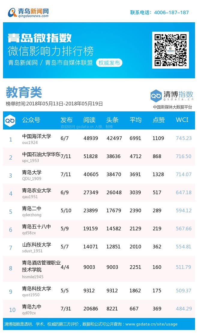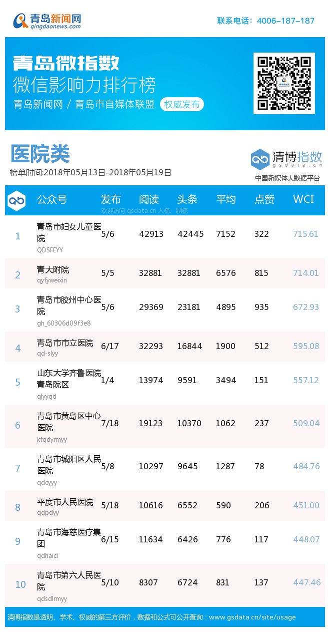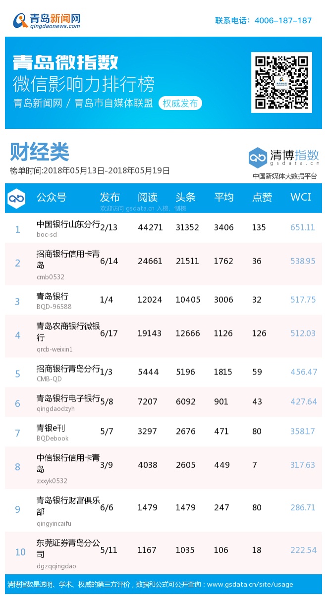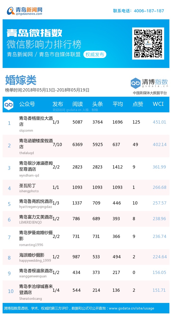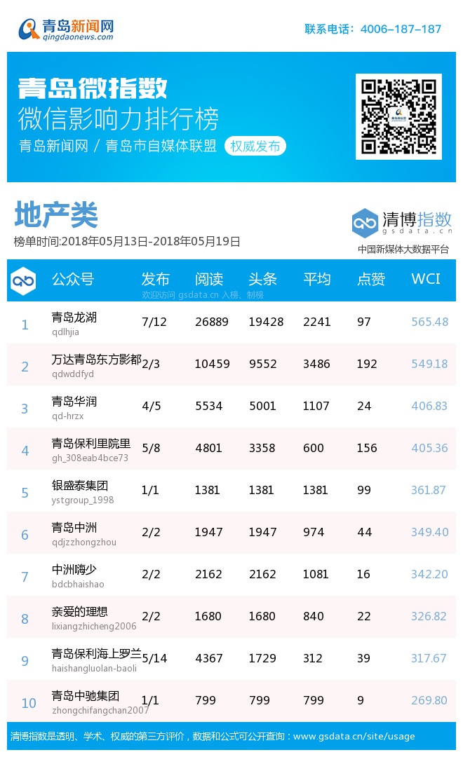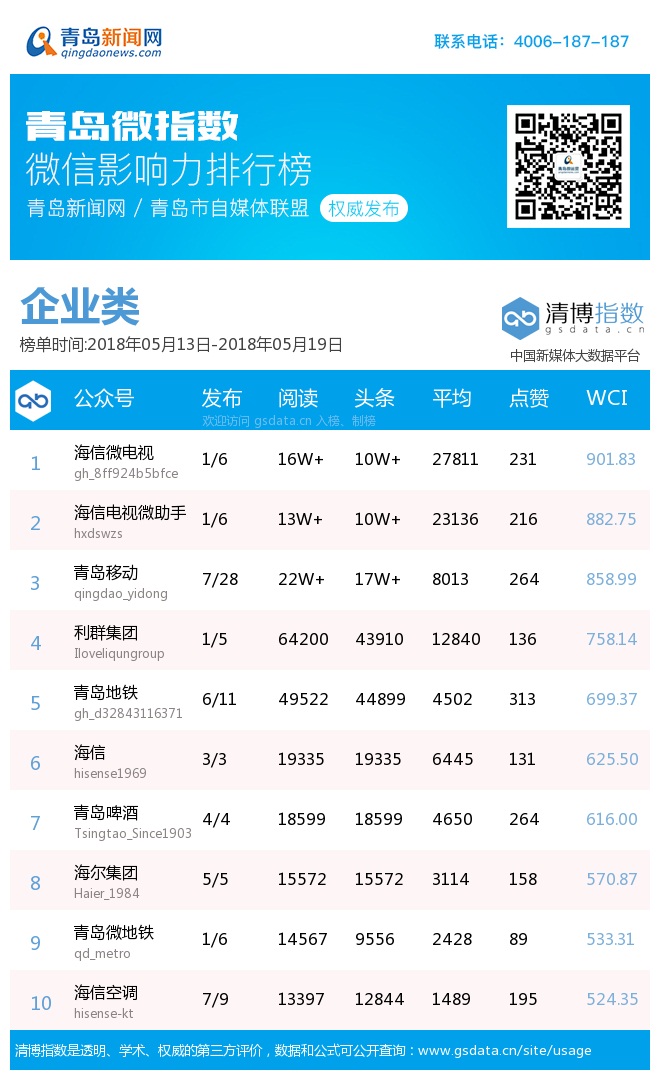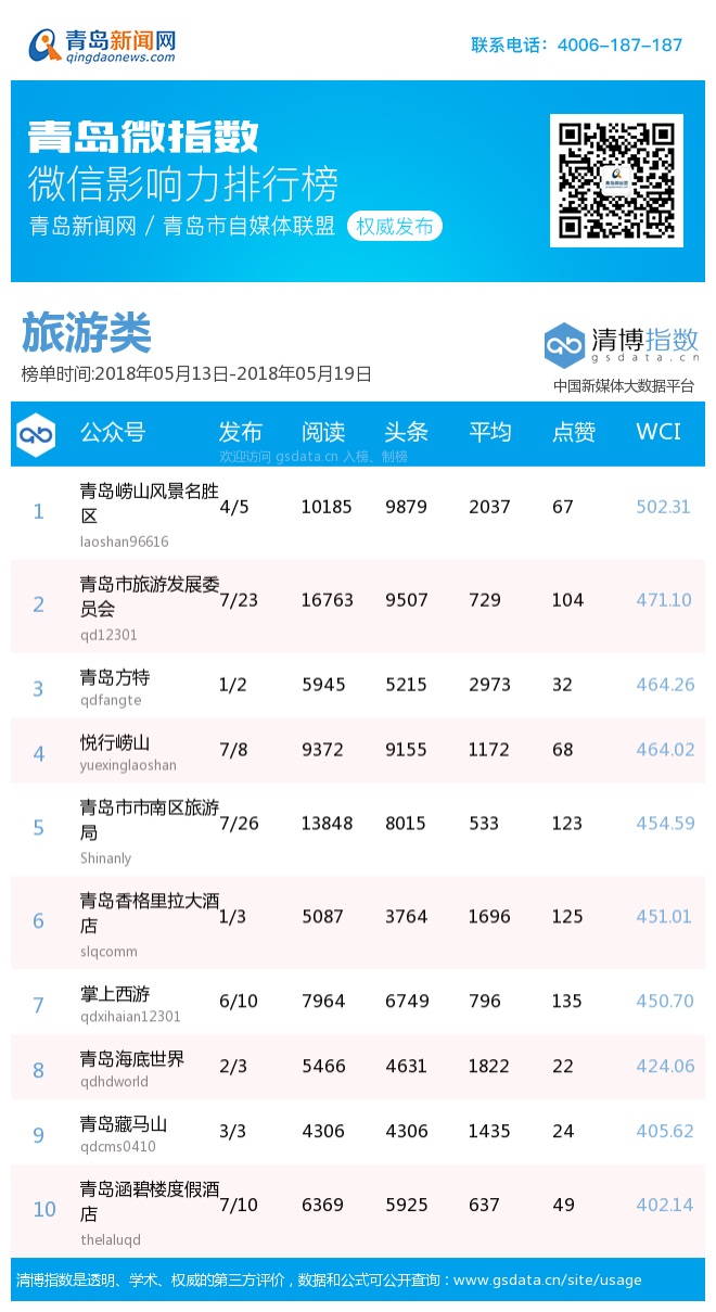 3、本次榜單收錄了青島14個行業(yè)微信公眾號,如您的賬號暫未收錄,可聯(lián)系4006-187-187。