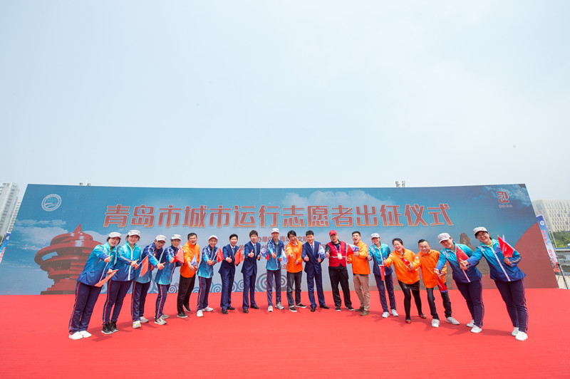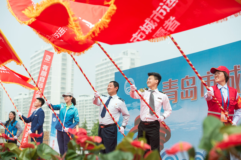 儀式現場,來自社區、行業以及文明交通的志愿者代表作了倡議發言,1000多名城市運行志愿者進行了宣誓,市委宣傳部、市文明辦和嶗山區的負責同志為城市運行志愿者代表授旗。