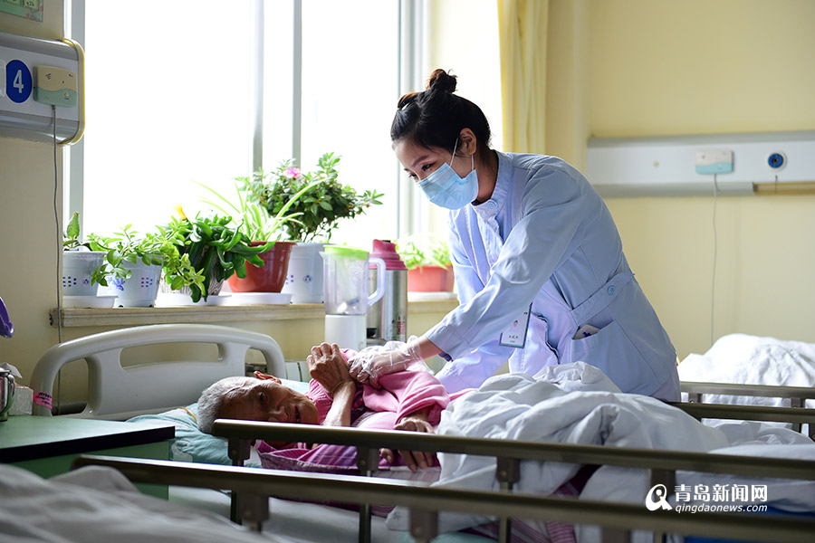 畢業之后,王曉燕這個平度姑娘通過考試進入到了青島市交通醫院,被分配進了專護病房。2012年,作為青島最早試點醫養結合的醫院之一,交運集團投資2000余萬元對所屬青島市交通醫院進行裝修改造,開辟出專門樓層用于醫養結合項目的打造,專門接收失能、半失能以及大病手術后需長期臥床治療的老人,王曉燕就是這里的護士。