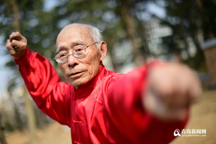 如果你是住在櫸林公園附近的老青島,相信你一定見過這個人,個頭不高、黝黑精瘦、戴著一副眼鏡,一身練功服,像個武林高手,每天8點,“高手”會準時出現在櫸林公園,先是熱身壓腿,而后打著一套誰也看不出門道的拳法……
