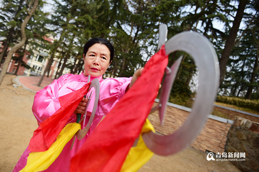 “有些陋習,該打破就要打破?!泵蠋煾嫡f,過去孫臏拳講究傳男不傳女,但到了他這一代,打破了這個規矩。蘭春玲今年58歲了,是孫臏拳的第五代傳人,也是孟師傅的徒弟,蘭老師的父親跟孟師傅做了幾十年的鄰居,她也是孟師傅看著長起來的,盡管跟著師傅從小學拳,但也是在幾年前師傅才將全部衣缽傳給了她,承認了她五代傳人的地位。