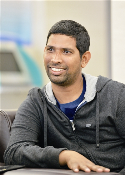 ▲印度留學(xué)生巴拉在青島求學(xué)。周光輝 攝
