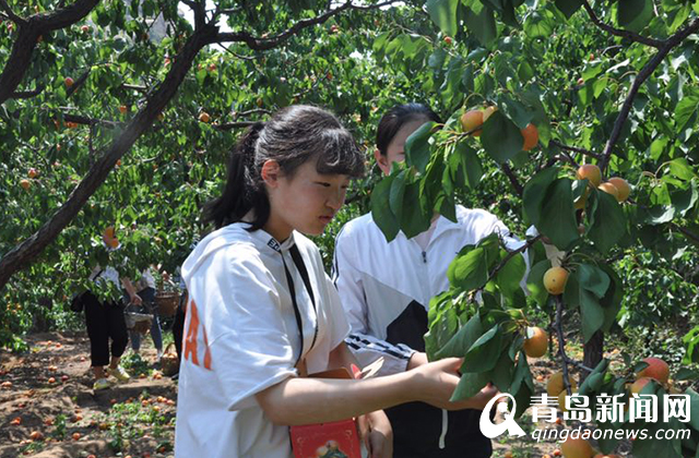 青島新聞網6月24日訊 生態田園美北宅甜杏香。6月23日上午,作為愛上北宅·慢悠游品果板塊之一的“杏好遇見你”公益采摘活動在我樂社區果園舉行。