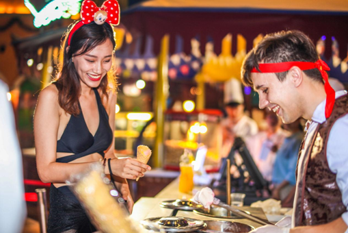 與摔碗酒同時(shí)和游客見(jiàn)面的還有萬(wàn)達(dá)主題樂(lè)園《冰淇淋花式表演秀》,來(lái)自土耳其的冰淇淋制作藝人現(xiàn)場(chǎng)炫技,與前來(lái)意欲品嘗美味的孩子、游客詼諧互動(dòng),場(chǎng)面樂(lè)趣橫生。有意體驗(yàn)的朋友需注意,《冰淇淋花式表演秀》的上演時(shí)間是每周六、日的14:00-17:00,表演地點(diǎn)在萬(wàn)達(dá)主題樂(lè)園爵士餐廳,非常值得體驗(yàn)一番!