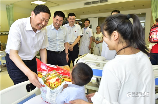 7月2日下午,市衛計委黨委書記、主任楊錫祥等一行與青島阜外醫院上級部門的青島港集團黨委書記、董事長鄭明輝來到心臟中心看望了在院手術的患兒和陪同的家長。楊錫祥代表衛計委給予本次救助活動8萬元資金支持,安順市陪同來院的工作人員、關嶺縣婦幼保健院徐俊代表患兒及家屬接受捐助。
