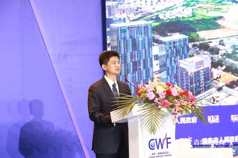 青島市金融工作辦公室副主任、青島金家嶺金融區管委會副主任王鋒致辭。