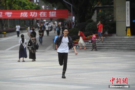 資料圖:重慶育才中學考點外,一名考生從考場跑出。當日,中國大部分地區的高考落下帷幕。中新社記者 陳超 攝