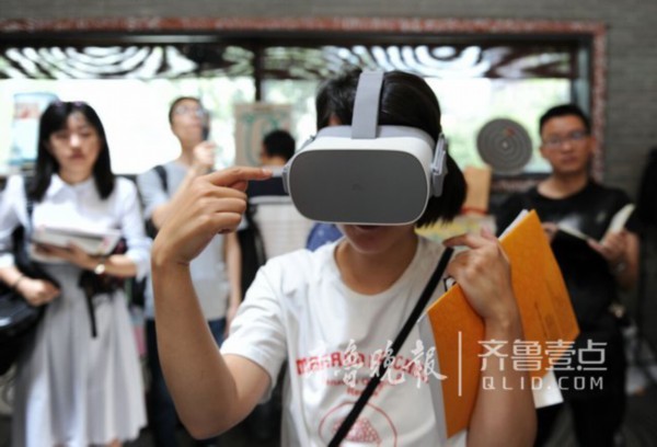融媒采訪團記者在未來小鎮體驗一家科技公司體驗VR視頻。