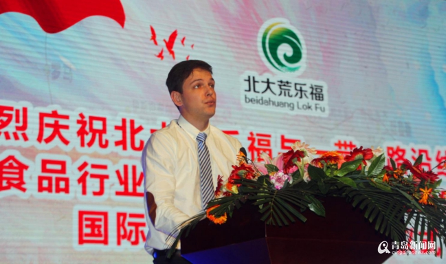 最后,活動舉行了國際牛初乳文化節啟動儀式,由與會的領導嘉賓翟繼東、王震、鐘巍、楊業釗、巴基斯坦國家代表 Hannah和Adi登臺剪彩。眾所周知,在9月初,青島北大荒樂福第一批國際游團隊將進軍俄羅斯,由北大荒樂福俄羅斯游事務代表Viacheslav Korotkikh介紹該項目