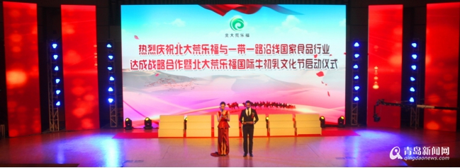 青島新聞網7月21日訊(記者 王超)今天上午,在青島大劇院,由黑龍江北大荒樂福國際經貿有限公司主辦、由青島北大荒樂福綠色食品連鎖超市獨家承辦的“北大荒樂福與一帶一路沿線國家食品行業達成戰略合作暨北大荒樂福國際牛初乳文化節啟動儀式”隆重舉行。