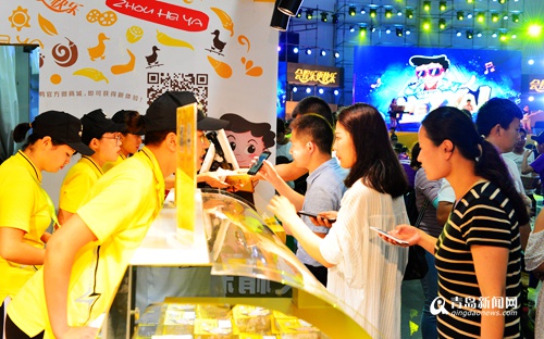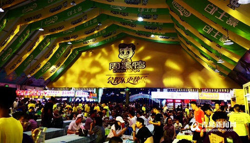 啤酒節上,啤酒肯定是絕對主角,而美食也必不可少。除了來自世界各地以及本土的特色小吃,如俄羅斯冰激凌、印度甩餅、中國青島海鮮等,不少品牌美食大咖也加入了“舌尖上的美食”盛宴。全國知名休閑熟鹵制品品牌周黑鴨亮相青島啤酒節,打造吃鴨看啤酒的high享模式。