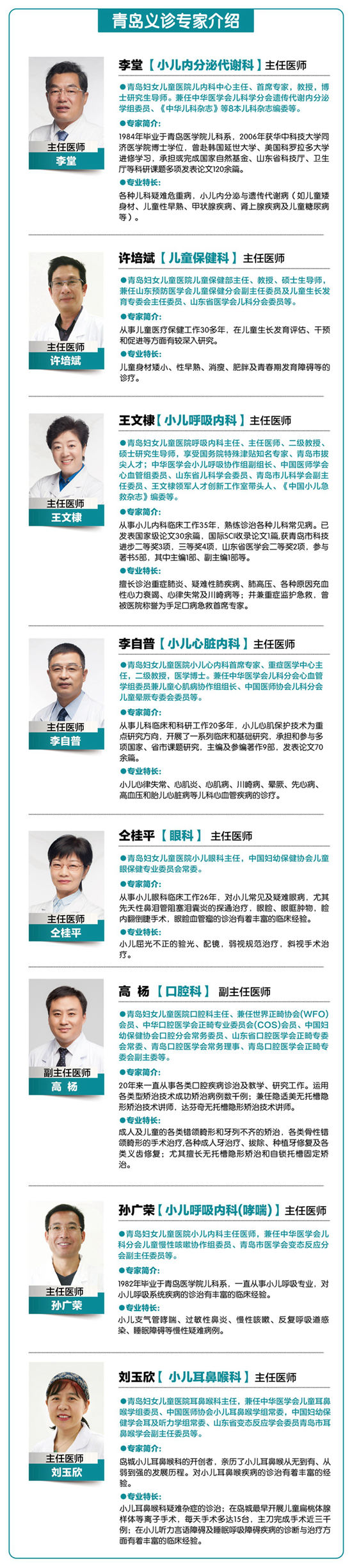 義診地點:青島市北區武定路27號(青島兒童醫院原址)