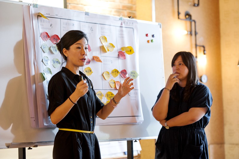 最后,由每一組選派一位代表上臺闡述自己所在組的商業(yè)模式,其他人就此進(jìn)行提問。秦瑛教練分別對各組進(jìn)行簡短點(diǎn)評。這一環(huán)節(jié)讓學(xué)員們在理清自己商業(yè)模式的同時,也能聽到其他人的建議和不同觀點(diǎn),避免自己走入誤區(qū)。