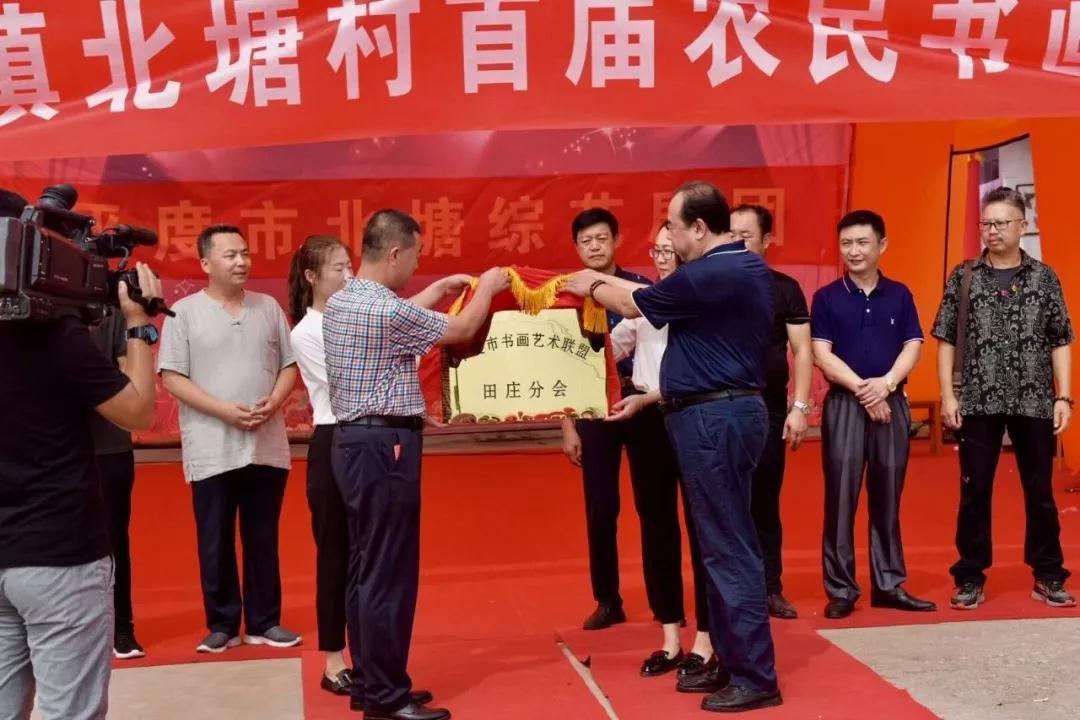平度市書畫藝術聯盟主席許錫友,田莊鎮黨委副書記張美林,平度市文化市場行政執法局副局長金秉坤,平度市書畫藝術聯盟副主席李書亭、王慶國,平度市文化館館長袁衛忠、黨支部書記李言豪、副館長綦亞克,北塘村在外書畫家張建業、張世強,田莊鎮孟家管區總支書記李兵,北塘村黨支部書記、村主任張志強等參加開幕式。